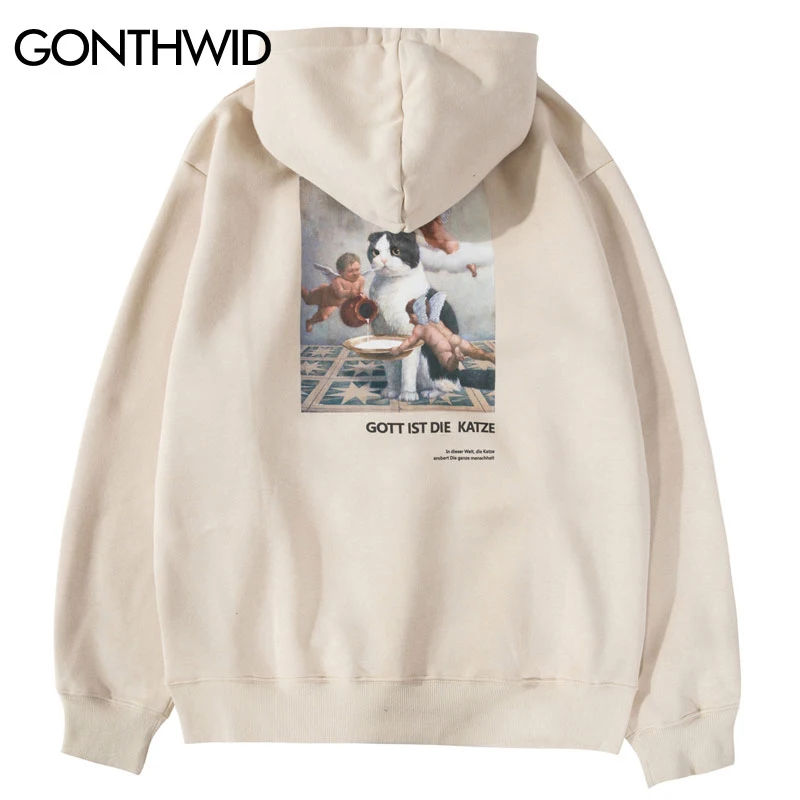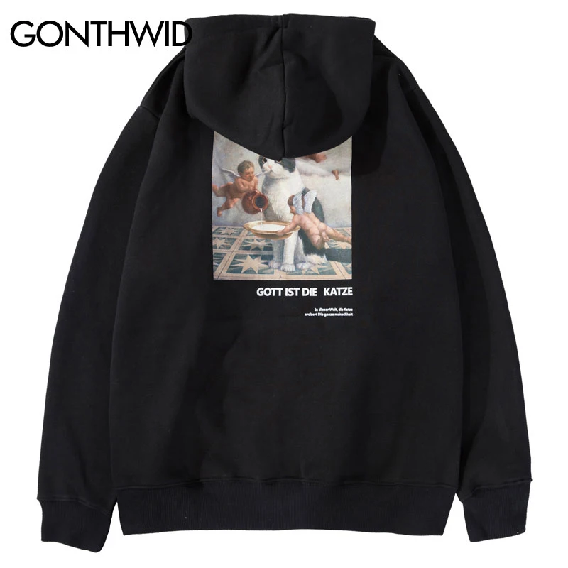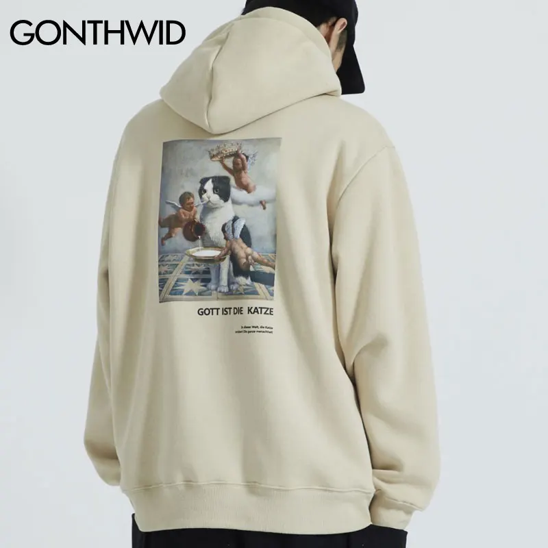 Толстовка мужская GONTHWID, с принтом ангелов, котов, в стиле хип-хоп, уличная одежда с капюшоном, 2020