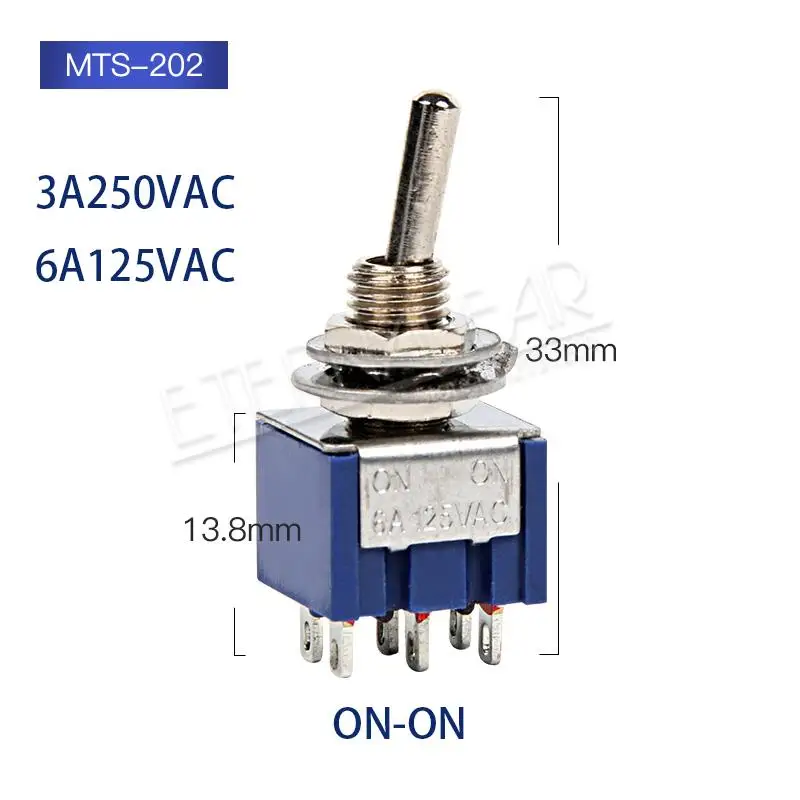 Клавишные переключатели, кнопка двигателя, клавишный рычаг, одиночное соединение, стандартный переключатель, 3 А, 250 В, 6 А, 125 В переменного тока, мини 6-контактный вкл.