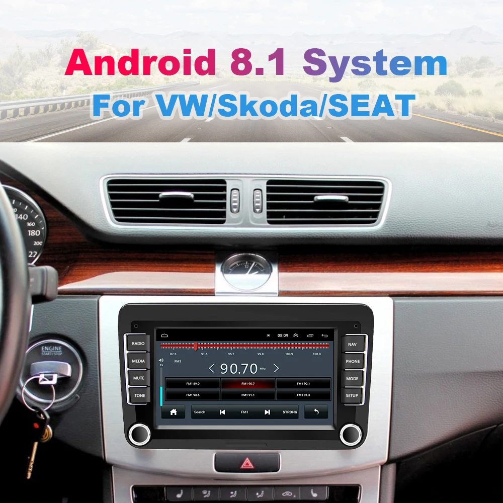 Автомобильный мультимедийный плеер Podofo 8G 128G, 2 DIN, автомобильное радио, GPS-навигация, радио, автомобильное 7-дюймовое Android, Wi-Fi, Авторадио для VWVolkswagenGolf