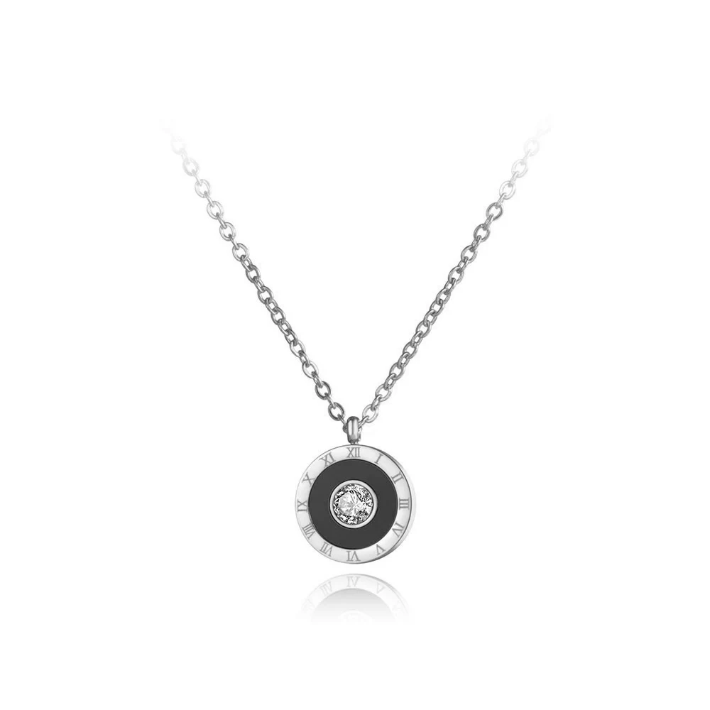 Lokaer модные черные акриловые Круглые Подвески с римскими цифрами для женщин ожерелья из титановой стали CZ свадебное ювелирное ожерелье N19106