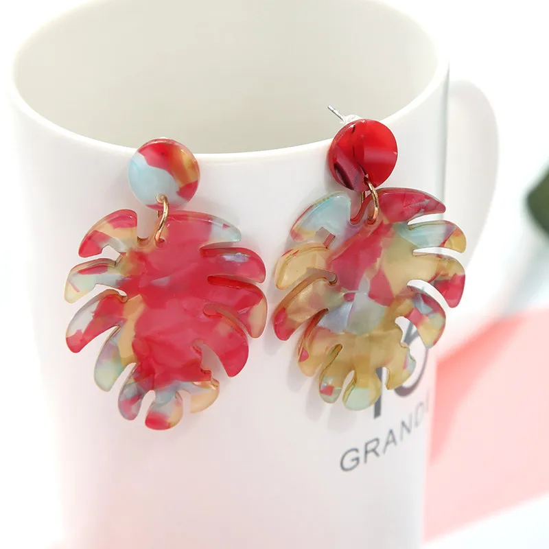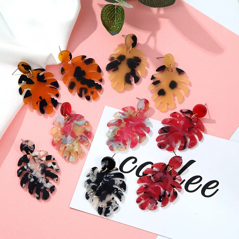 Индивидуальная богемная ацетатная серьга из акриловой смолы с листьями дерева, многоцветные массивные серьги-подвески, Женские Ювелирные изделия, 2019