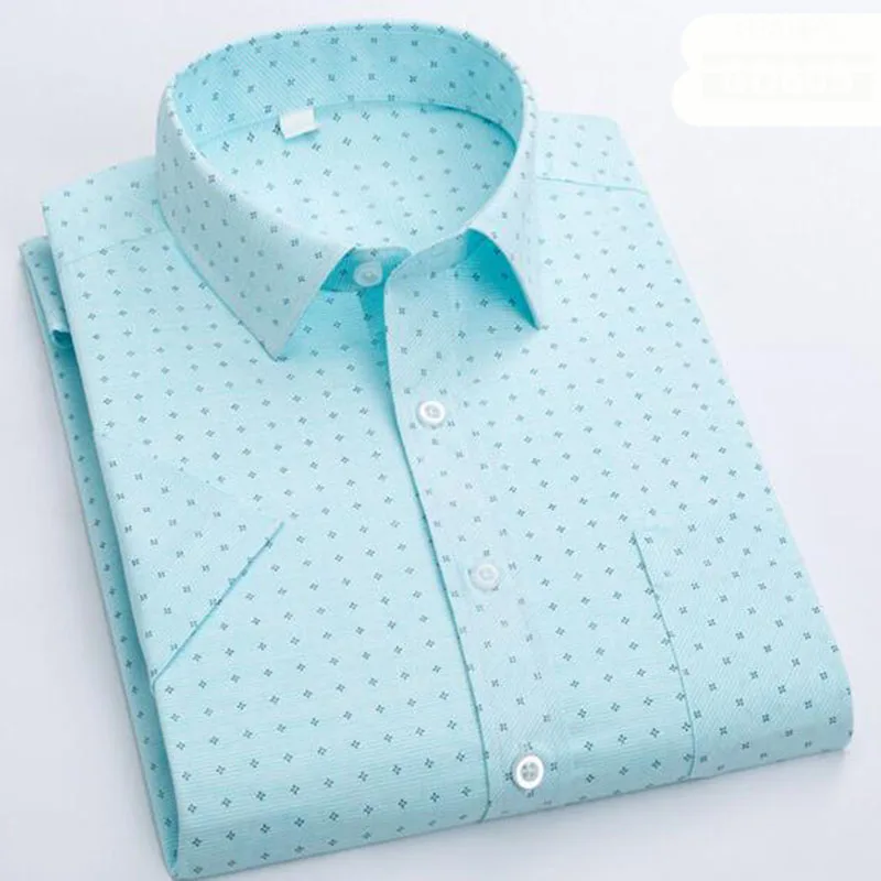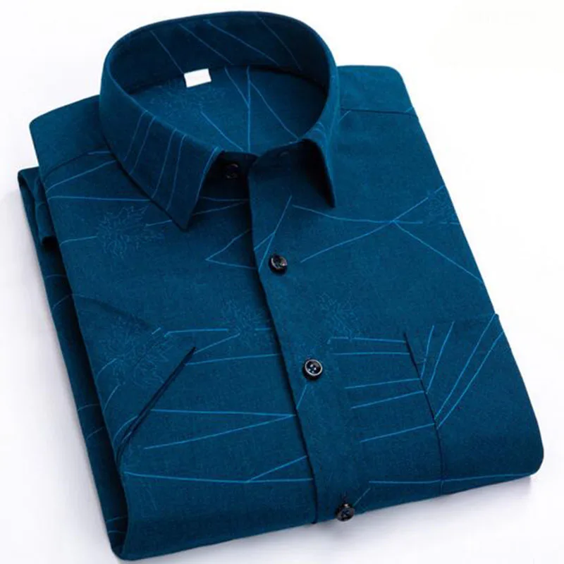 Рубашка мужская с отложным воротником, Модная хлопковая Удобная сорочка с короткими рукавами, Облегающая рубашка в английском стиле с геометрическим принтом, лето