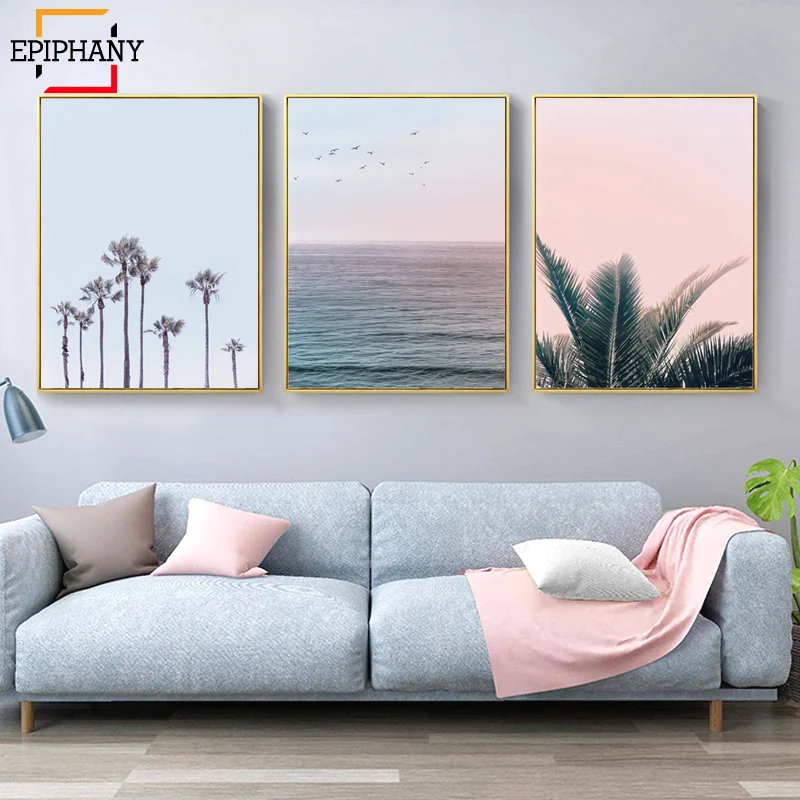 Современный домашний декор, принты береговой стены, пальмы, океан, холст, тропические постеры, скандинавские настенные картины для гостиной