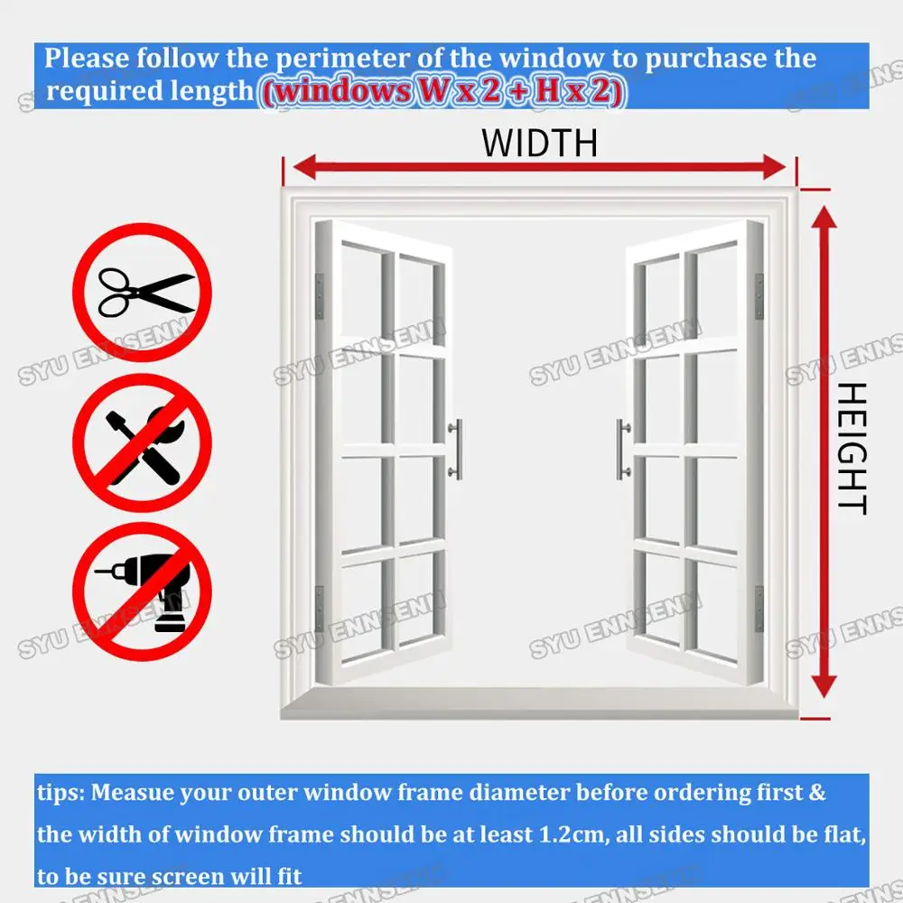 Пожалуйста, следуйте по периметру окна, чтобы приобрести необходимую длину (windows W x 2 + H x 2)