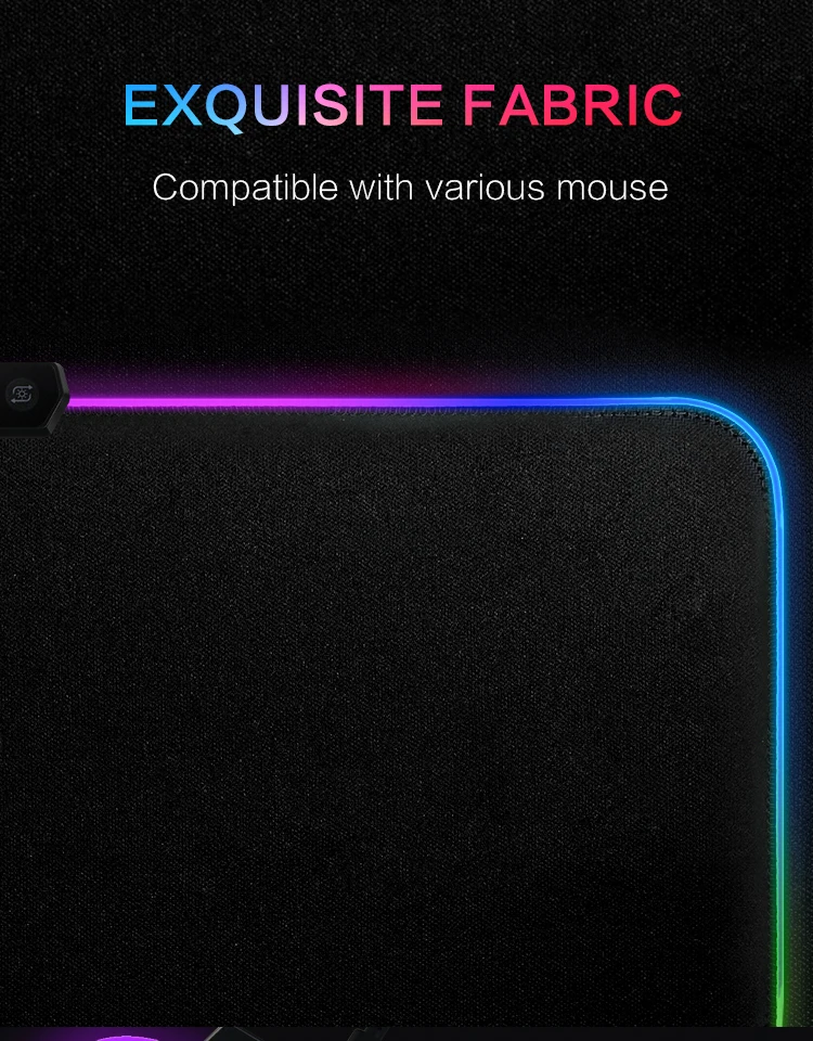 Дизайн освещения на четырех сторонах коврика для мыши, идеально сочетается с любой светодиодный мышью и клавиатурой, подчеркивает атмосферу и помещает вас в красочный мир.