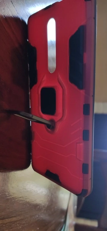 фото уже не сделаю, т.к. чехол на телефоне. Сделан добротно, подставка - кольцо работает, удобно смотреть на кровати, или на столе кино. единственный минус - телефон тяжелее стал и когда ложишь экраном вверх на столе то при наборе текста телефон неустойчив за счет металл кольца проставки посередине.