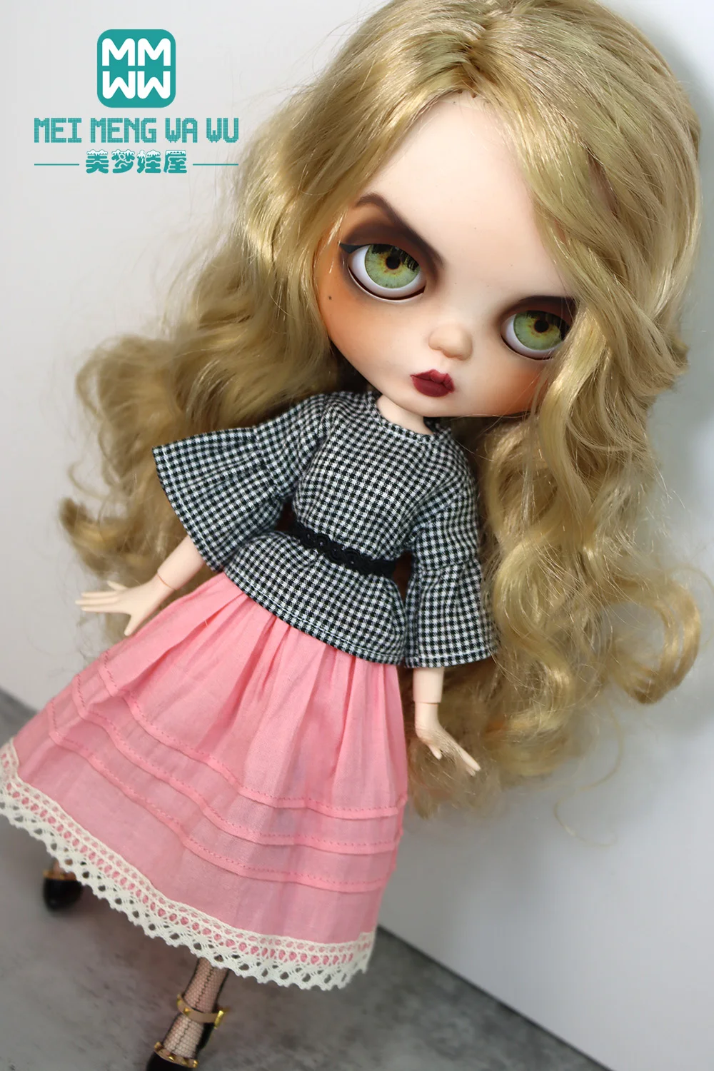 Рубашка-фонарик Blyth в клетку, мини-юбка для кукол блайз, азон, OB22, OB24, 28-30 см, аксессуары для кукол