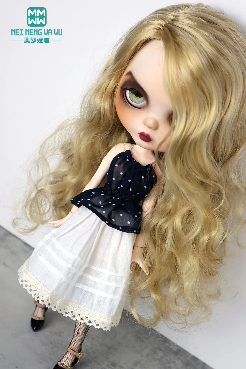 Одежда для кукол Blyth, джинсовое платье на бретелях, черное, красн...