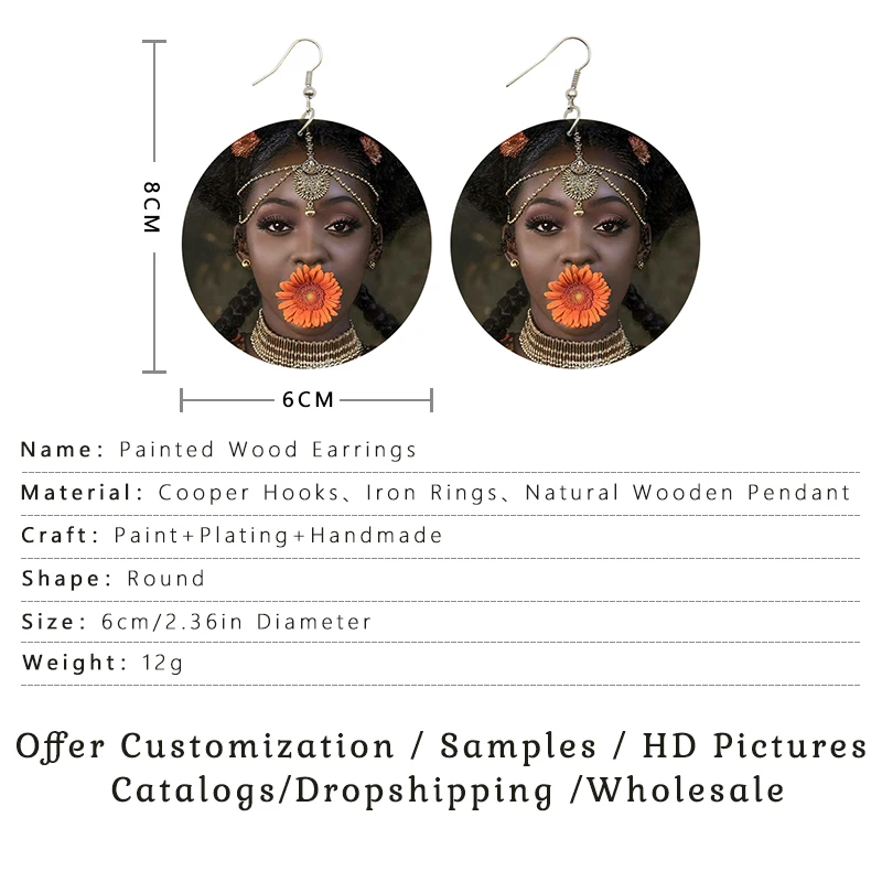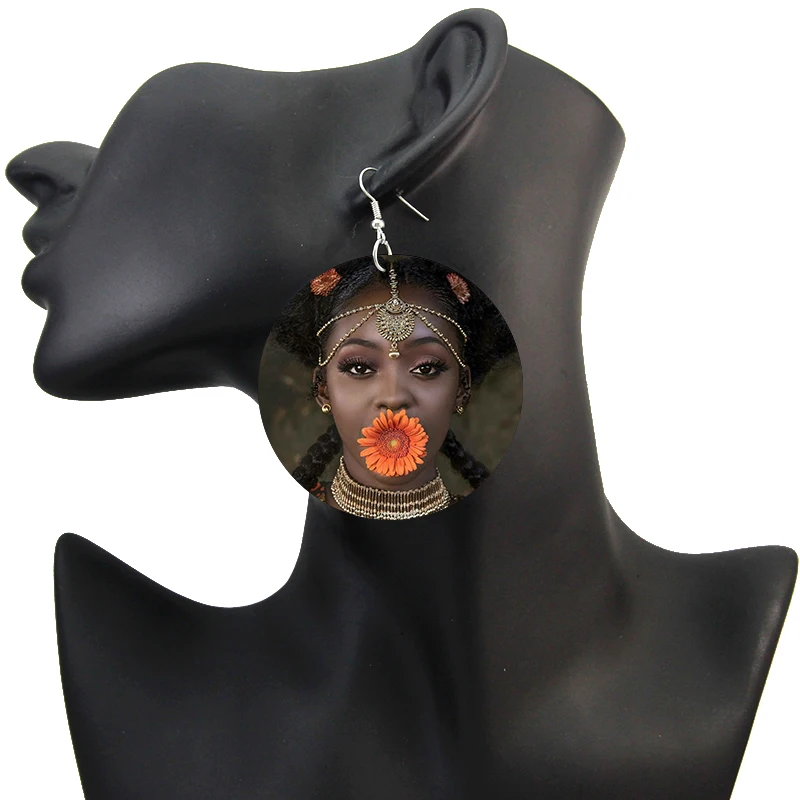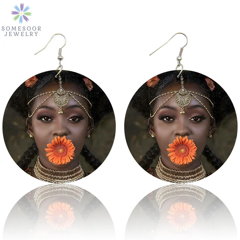 SOMESOOR плоские круглые двусторонние серьги с рисунком африканских цветов Красота черная женщина натуральные волосы афро фотографии деревянные Ювелирные изделия Подарки