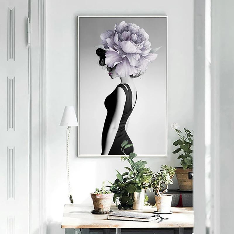 Абстрактная женщина, цветок, высокое качество, печатная Картина на холсте, настенные художественные принты, постер, картина для гостиной, домашний декор в скандинавском стиле
