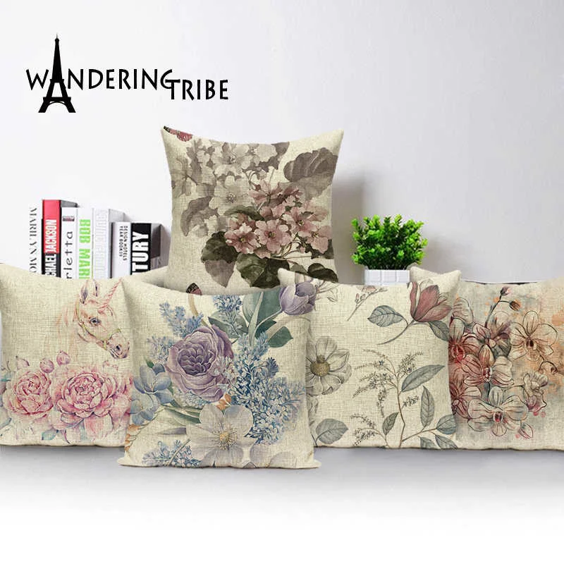 Наволочки с цветочным принтом, винтажные наволочки для подушки домашнее украшение, подушки 45X45 см с растительным принтом, подушки для дивана, автомобиля, кровати