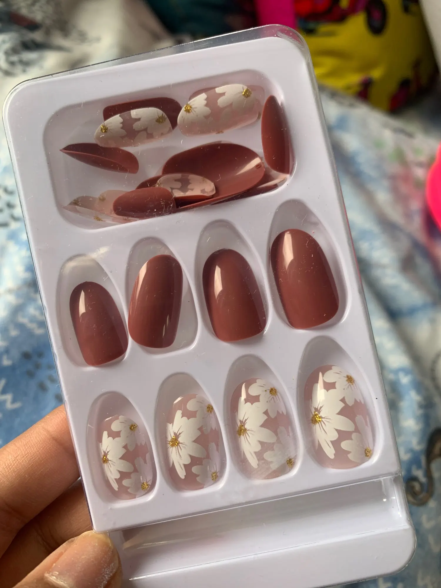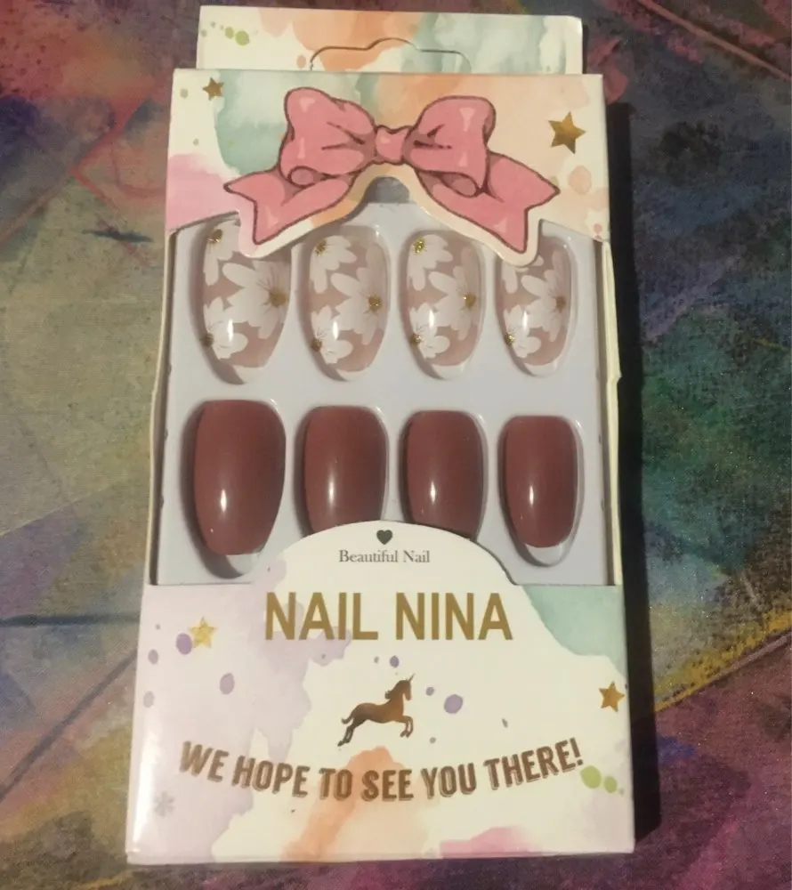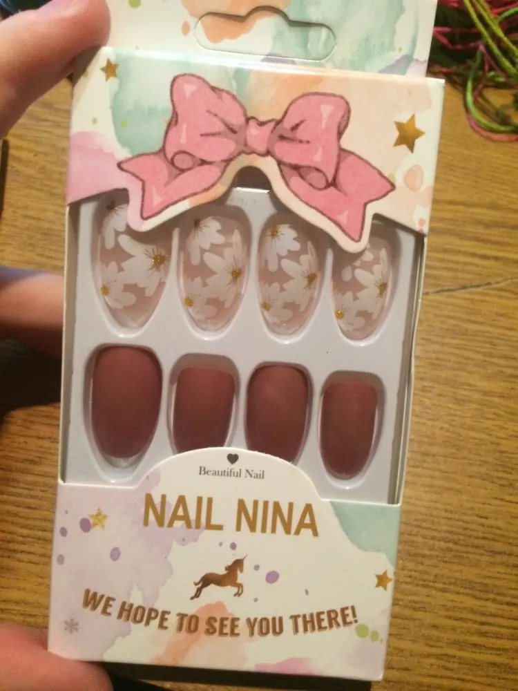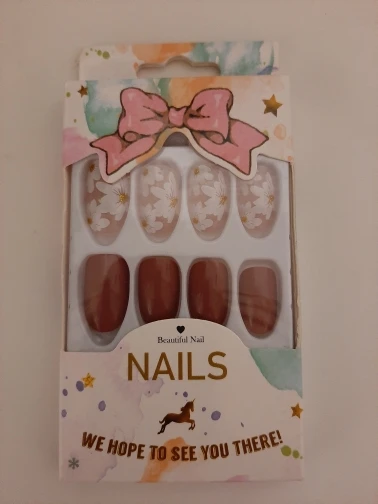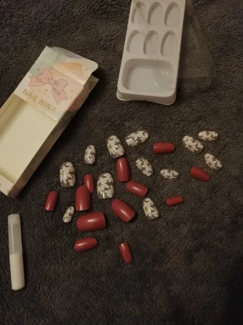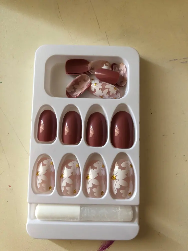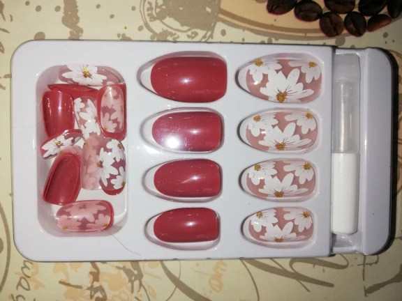 Очень красивые ногти поставляются с клеем. Цвет такой же, как описано, цветы действительно красивые и очень красивые. Доставка была очень быстрой, я рекомендую их на 100%