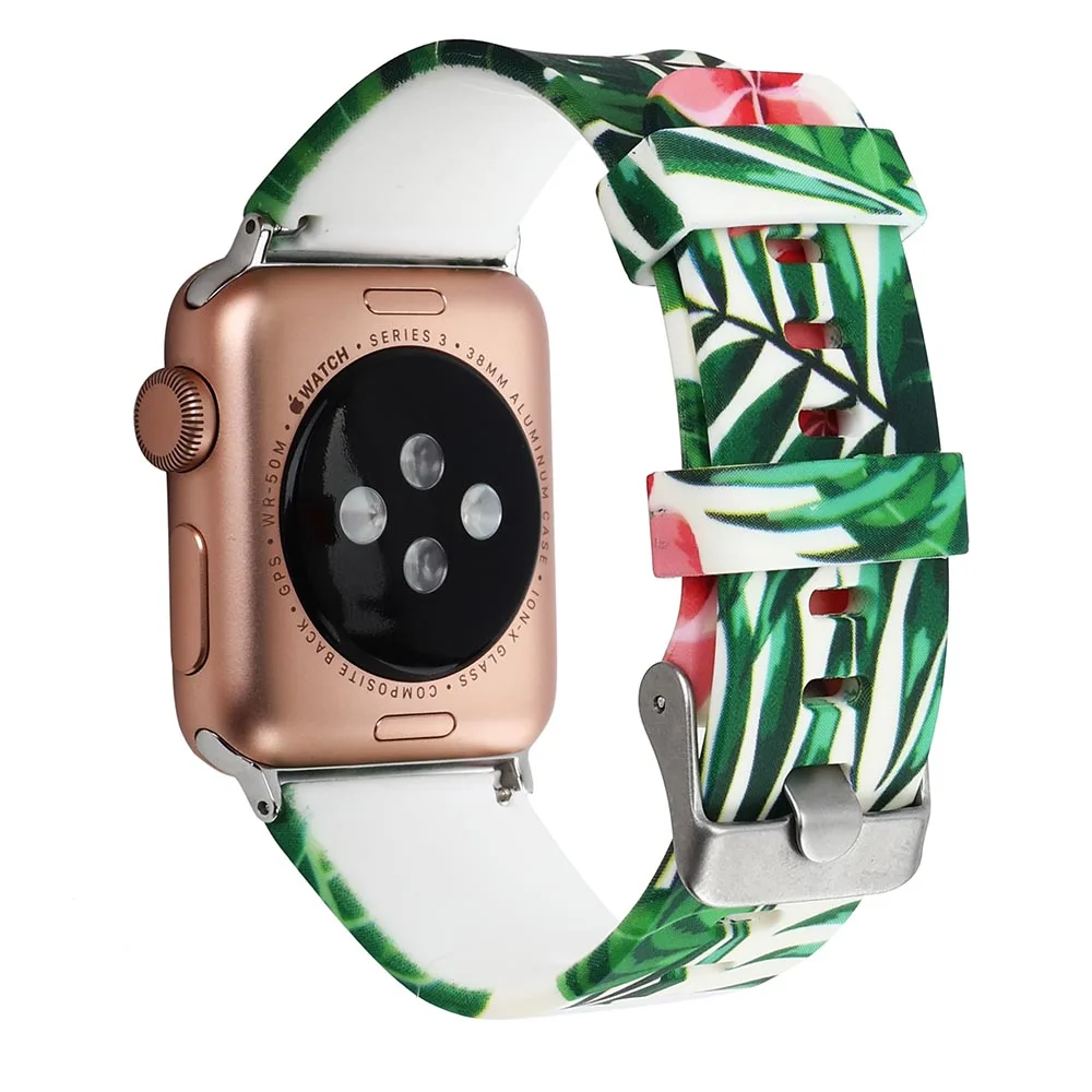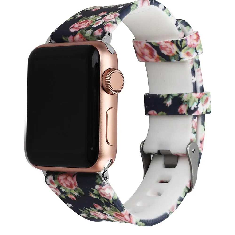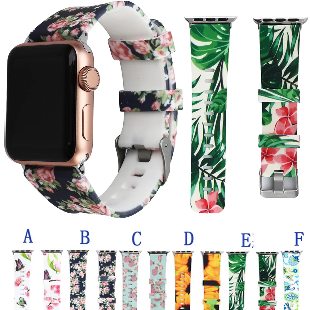 Ремешок силиконовый для Apple watch Series 4 3 2 1 40 мм 44 мм, браслет с цветочным принтом для iWatch Series 4 3 2 38 мм 42 мм