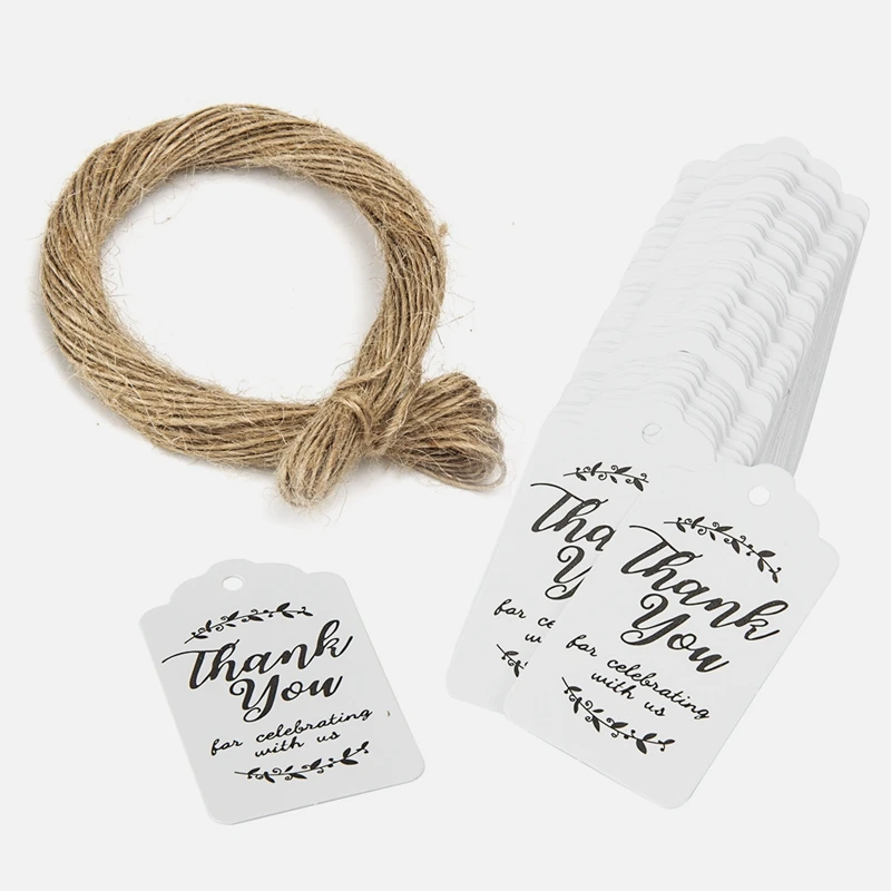 100 шт., ярлыки из белойкоричневой бумаги для празднования с нами, ярлык для подарка на свадебную вечеринку с джутовым шнуром 200 см в комплекте
