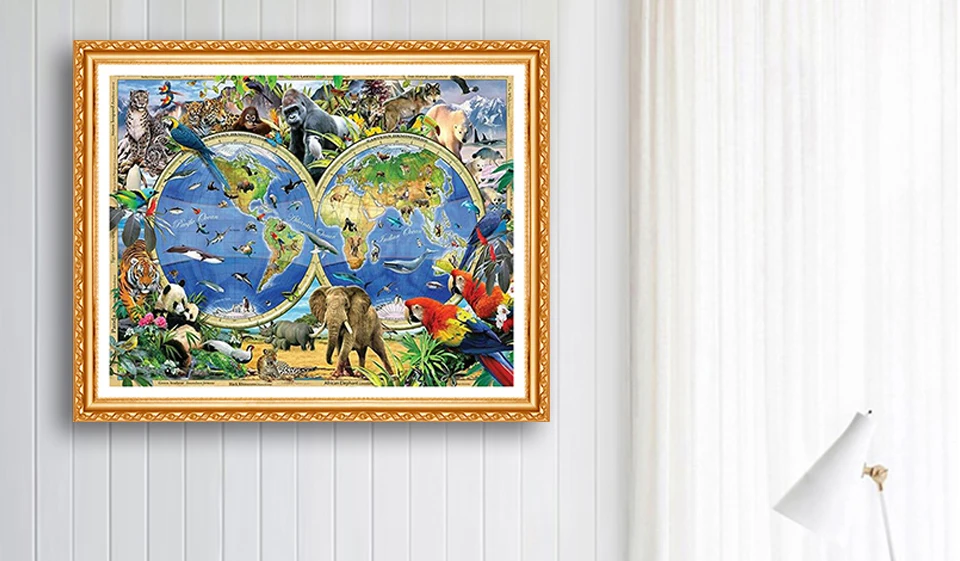 DIY 5D алмазная картина вышивка крестиком животные карта мира бриллианты вышивка квадратный домашний декор FS1005