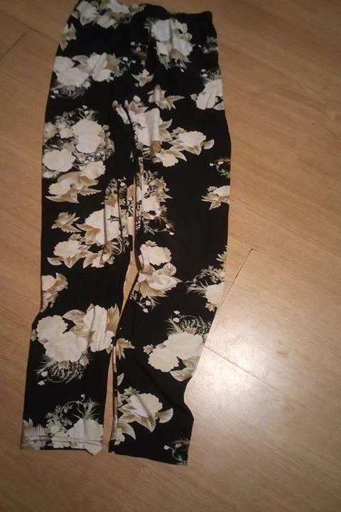Очень красивая мягкая ткань, приятная на ощупь, принт как на фото. Идеальный размер (Возьмите L; Мой рост 173 см и Вес 57 кг, мои бедра расслаблены 93 см). Спасибо!