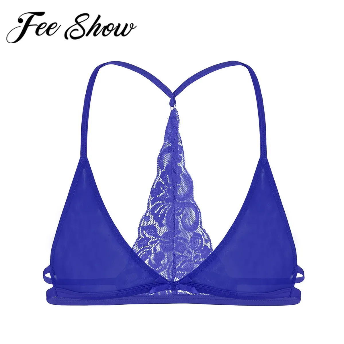 Мужское нижнее белье Sissy, экзотические бюстгальтеры, прозрачный кружевной y-образный треугольник без косточек, бюстгальтер без косточек