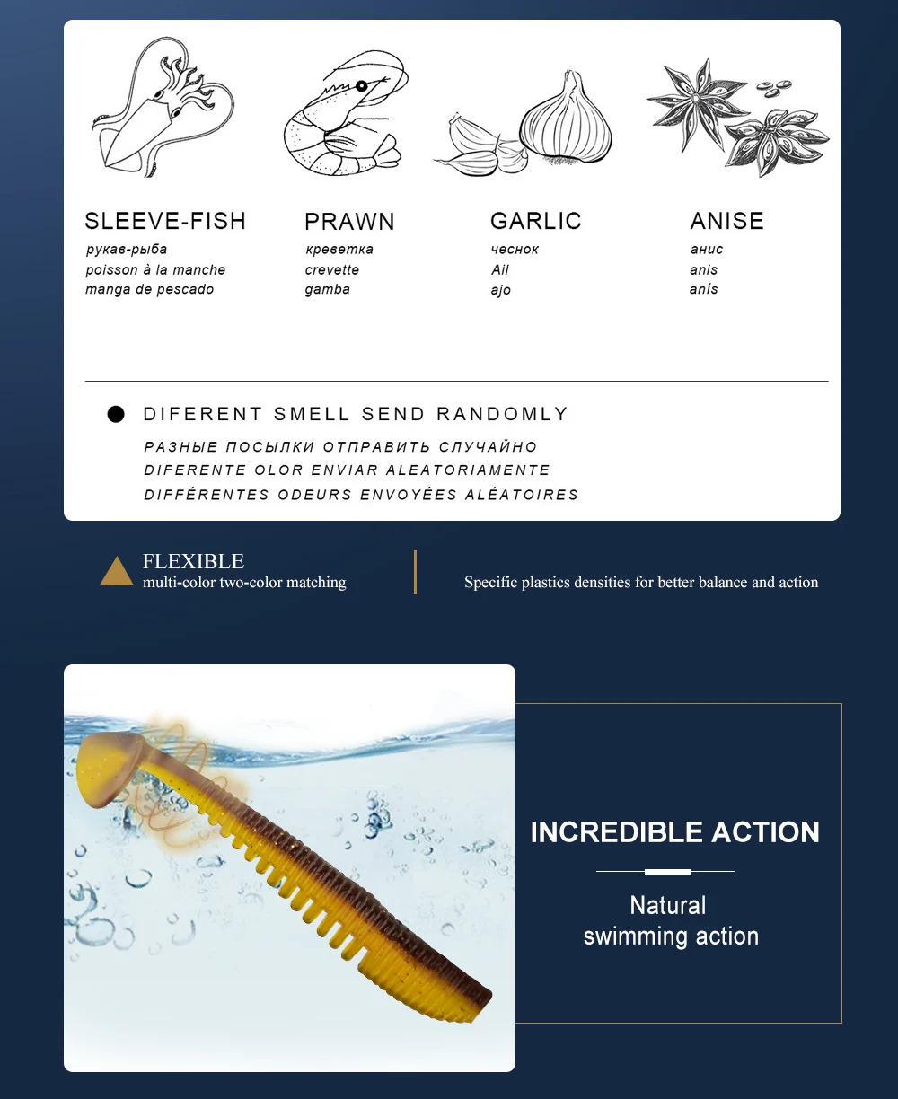 Великолепные, мягкие и очень вонючие мягкие приманки, не могу дождаться его, чтобы попробовать его, я настоятельно оставляю отзыв на приманки от FISH KING в целом!