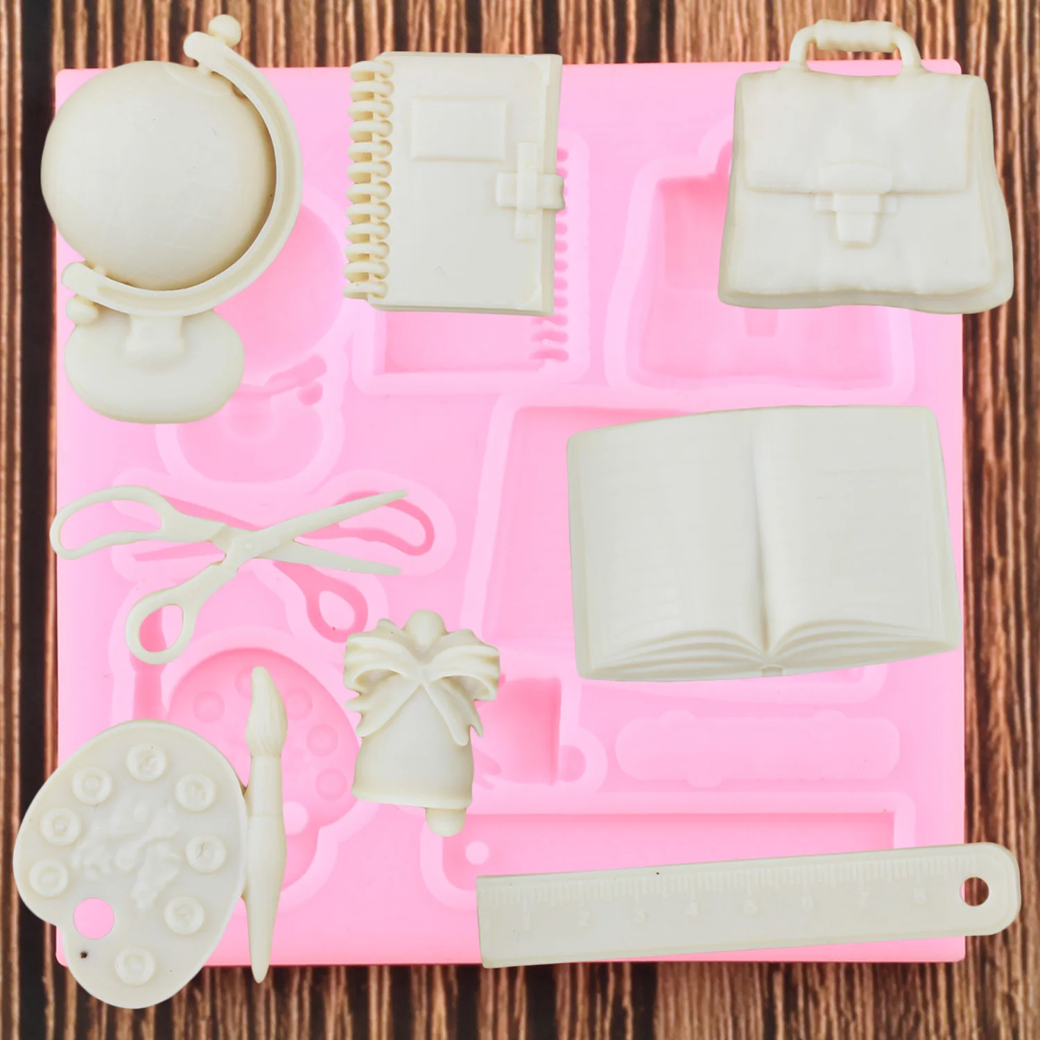 3D школьная сумка для книг, ручка для рисования, колокольчик, глобус, силиконовая форма, DIY Инструменты для украшения торта, Sugarcraft, помадка, формы для шоколада