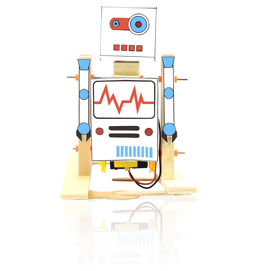 Посылка: 1 комплектDIY деревянный Электрический робот-игрушка для ходьбы.