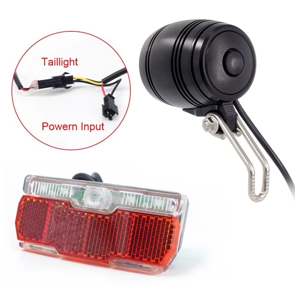 Фара для электровелосипеда 1. Высокая мощность 100 люкс, достаточно яркий для городского и дорожного велоспорта 2. Широкий диапазон входного напряжения: подходит для большинства электровелосипедов. Задняя часть электровелосипеда светильник 1. Большой угол луча 180 градусов, в разных направлениях светильник электрического велосипеда. 2. Широкий диапазон входного напряжения: подходит для большинства электровелосипедов.