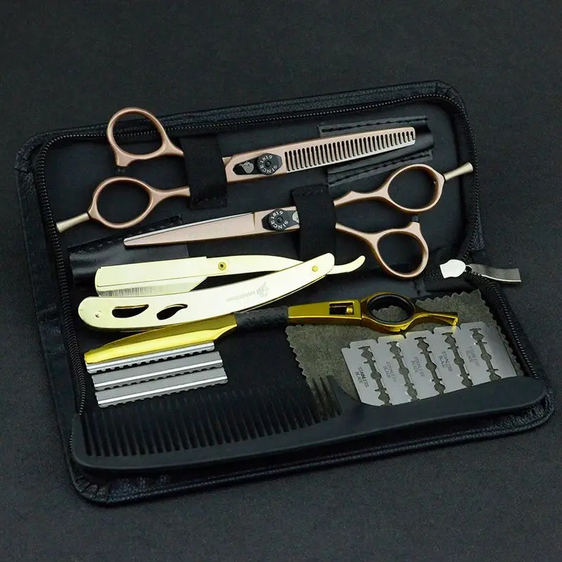 5,56,0 Профессиональные Японские Стальные Парикмахерские ножницы набор парикмахерских ножниц бритва горячий бритвенный набор бритвенных ножниц