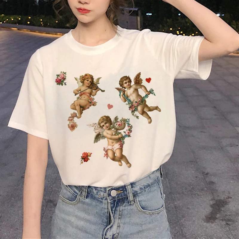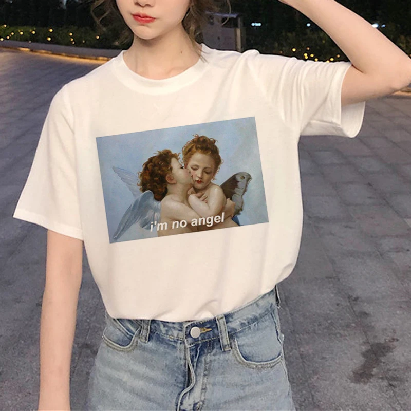 Новинка забавная Футболка Harajuku с ангелом женская футболка Ullzang в эстетике кавайная футболка 90-х мультяшная футболка с графическим рисунком корейский стиль Топы женские футболки