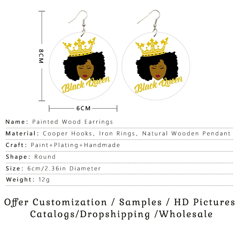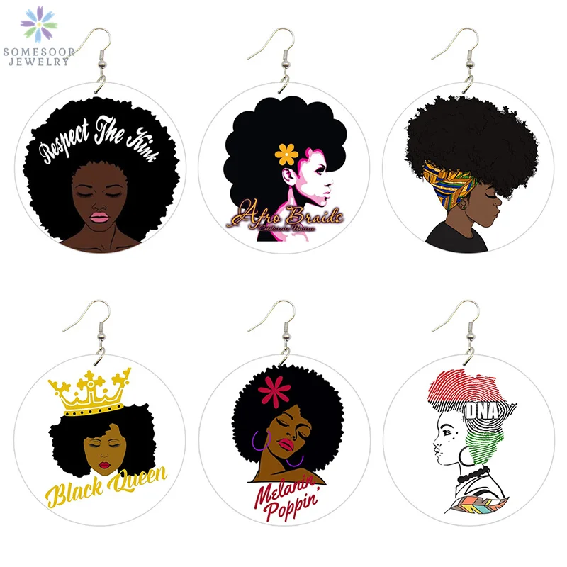 SOMESOOR меланин поппин королева вьющиеся деревянные висячие серьги...