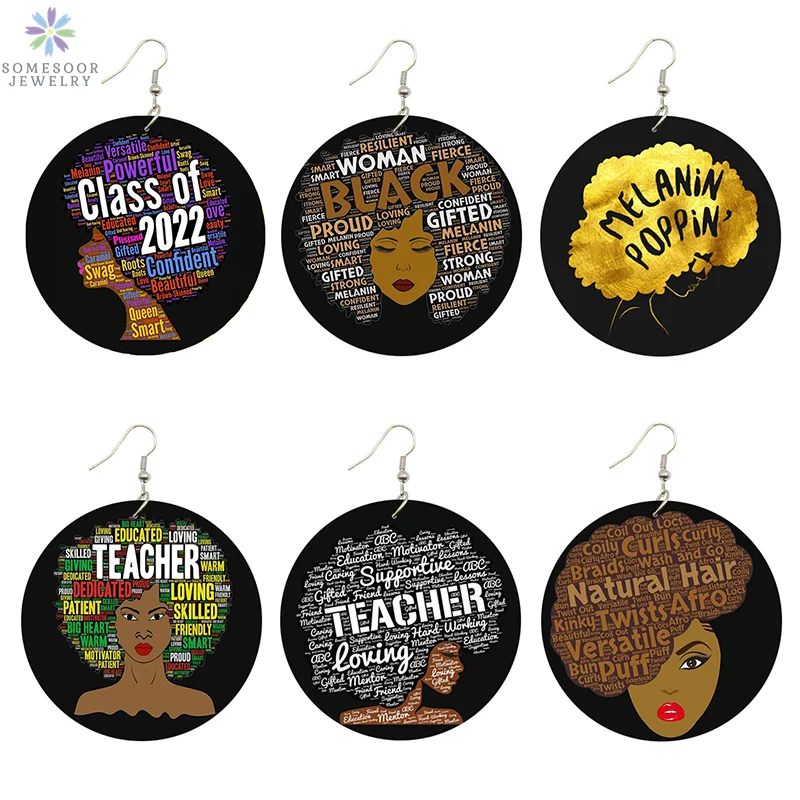 SOMESOOR меланин поппин королева вьющиеся деревянные висячие серьги...