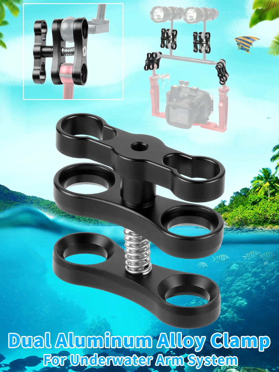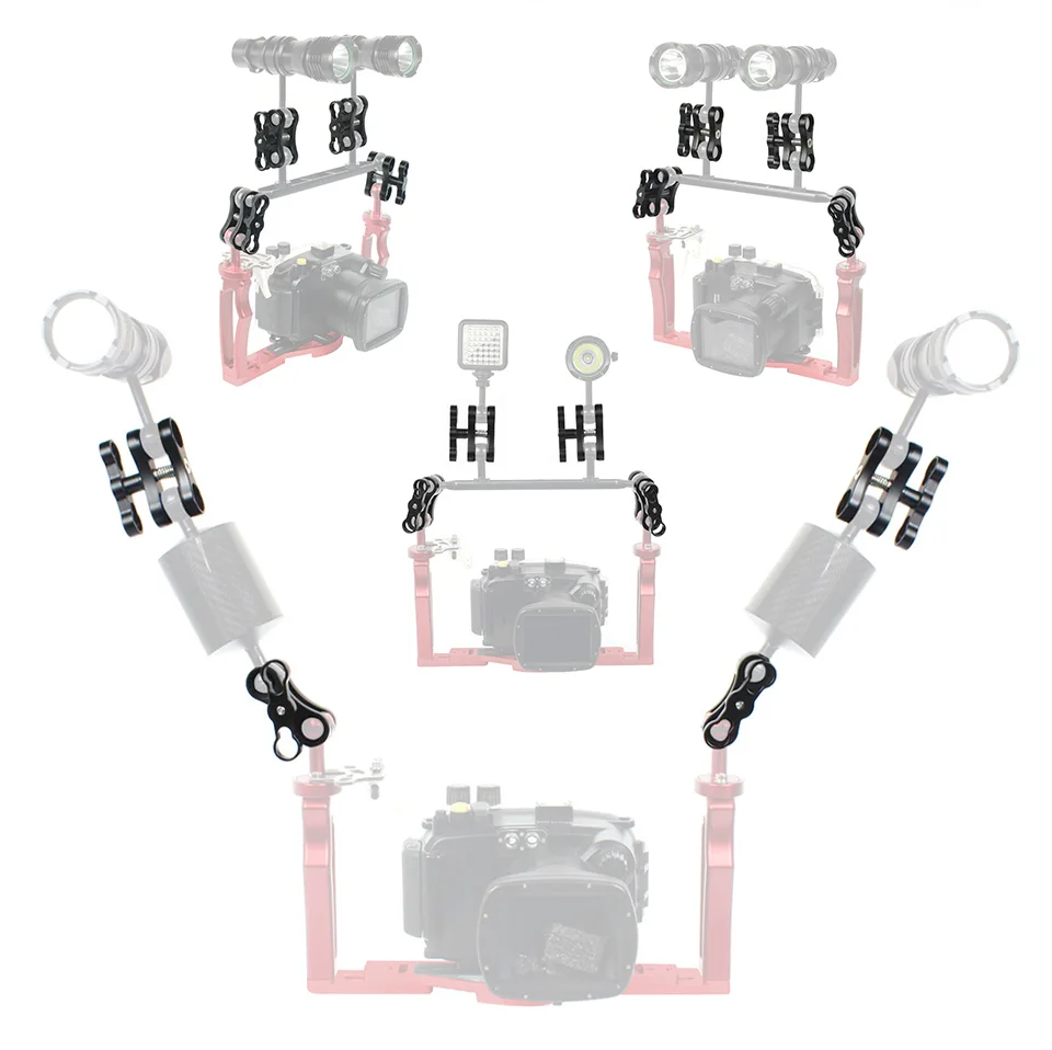 2 отверстия из алюминиевого сплава, для дайвинга, Шаровой Зажим-бабочка, крепление на руку для GoPro Hero 7 6 5 4 Xiaoyi Sjcam, Спортивная Экшн-камера