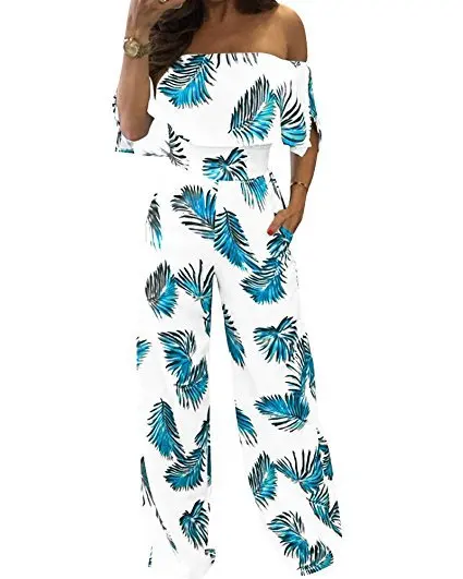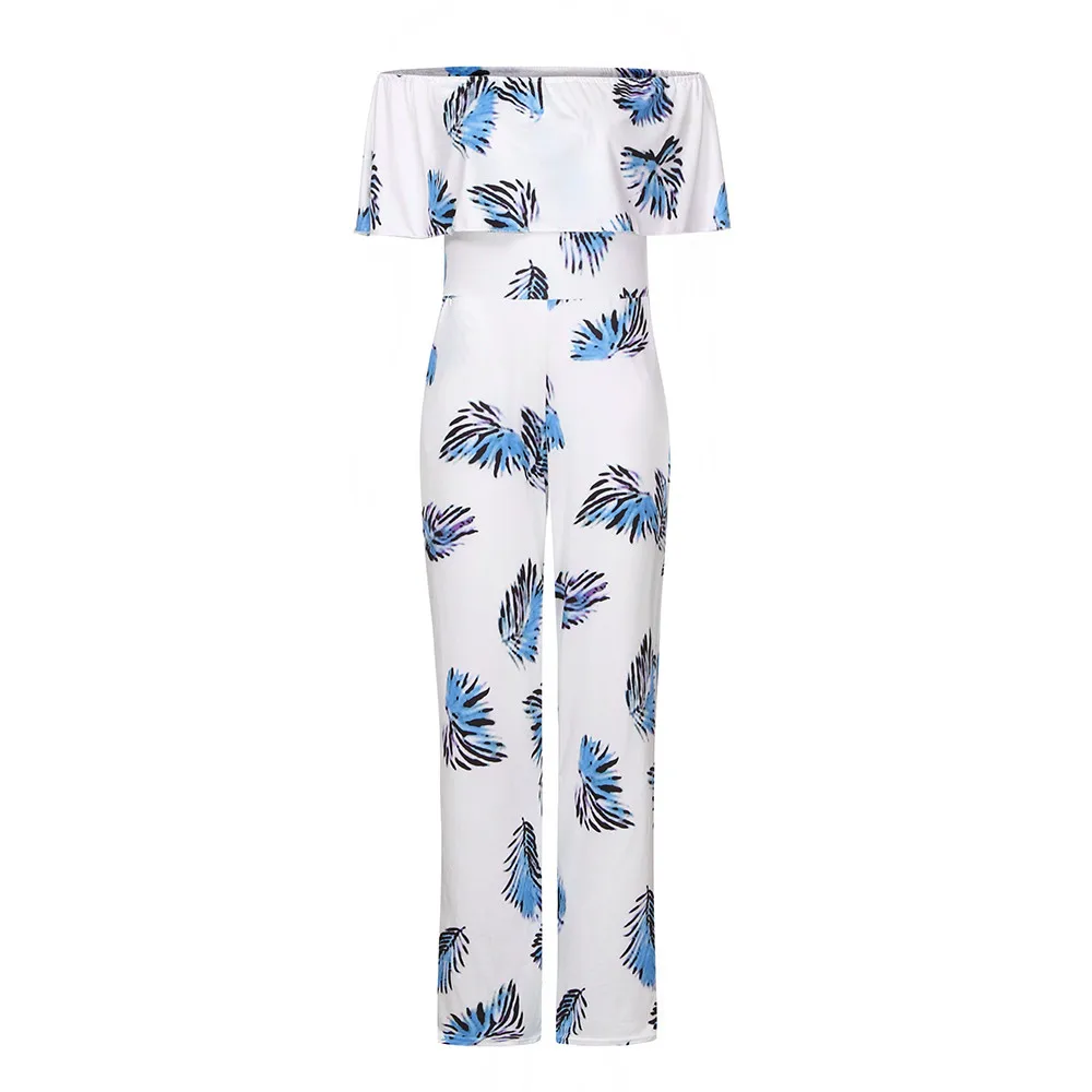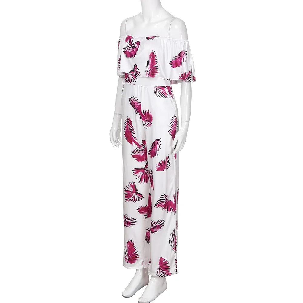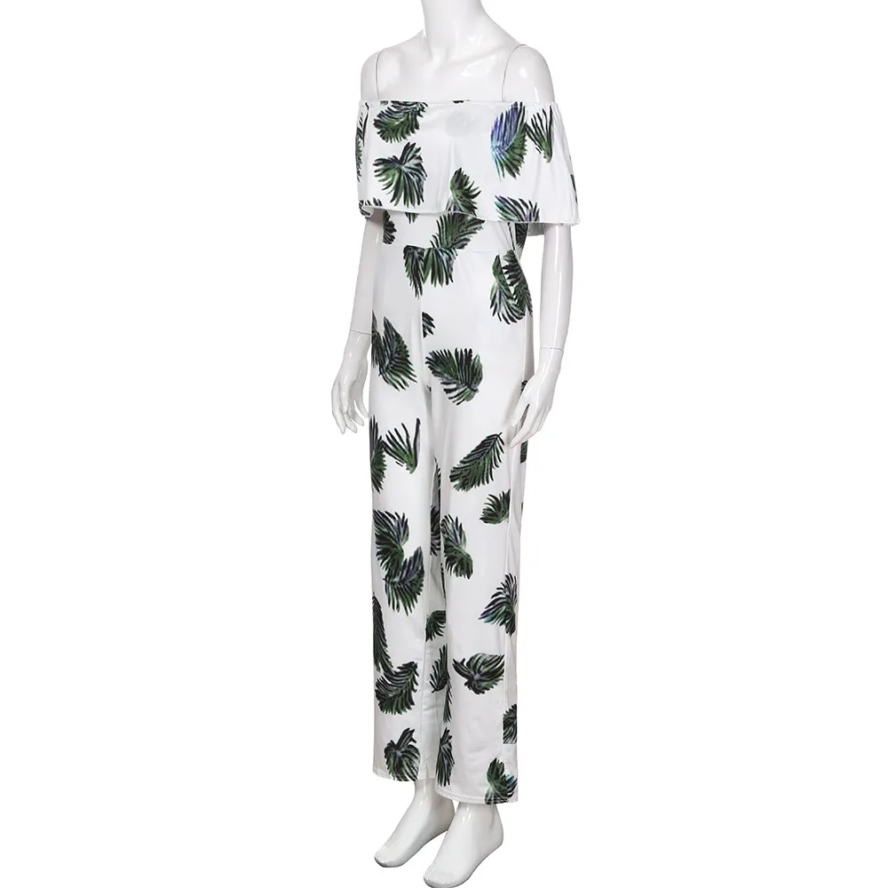 Женский комбинезон с открытыми плечами, летний свободный пляжный комбинезон с коротким рукавом и оборками, 2019