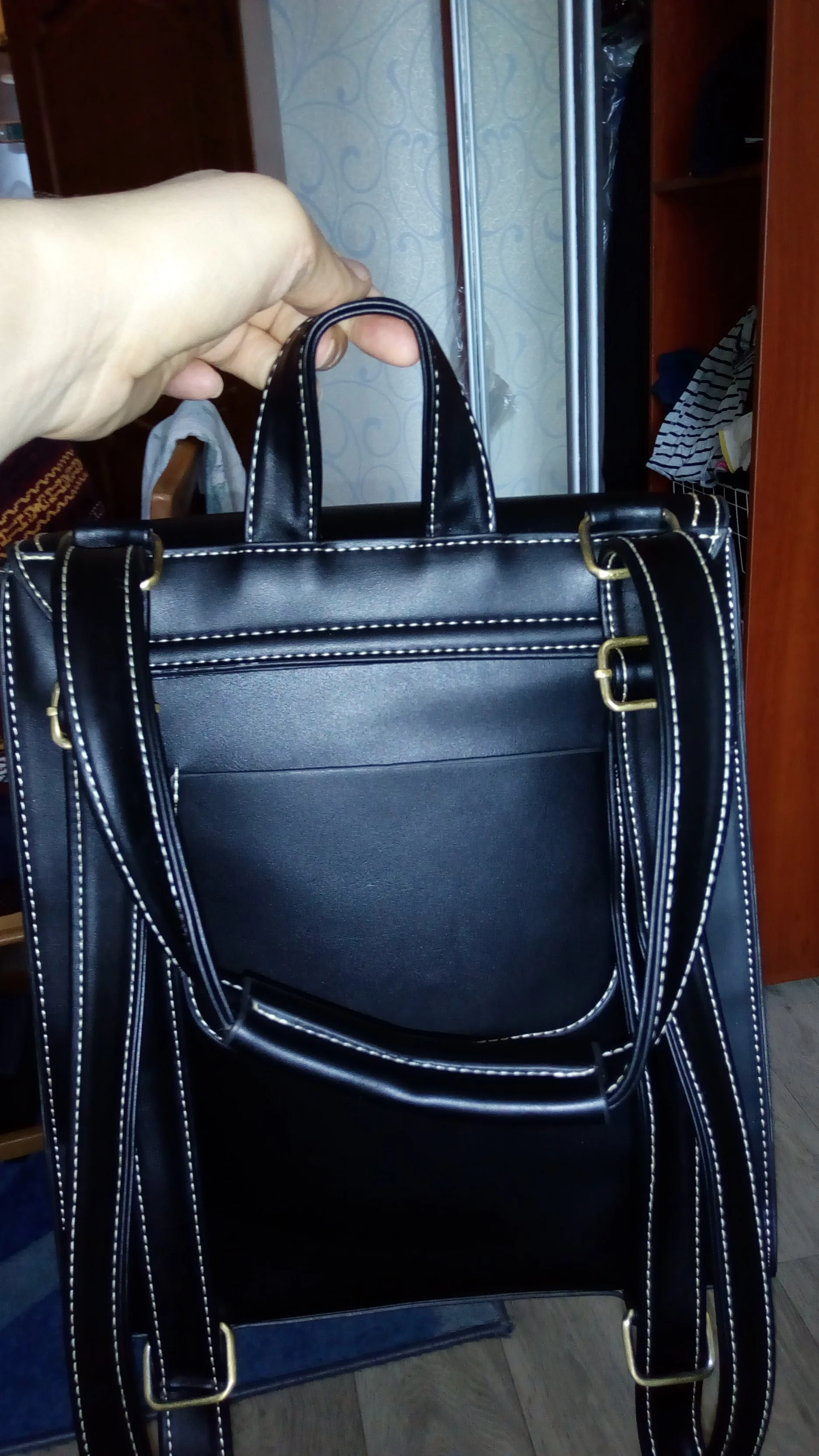 С продавцом не общалась. Рюкзак отправили в день оплаты. Курьер привез домой. Первые 2 дня был жуткий запах резины. Внешне конечно даже отдалённо не похоже на кожу. Но смотрится не плохо. Рюкзак пришёл с косяком. Одна лямка не была прошита. Лямки регулируются. Можно носить как рюкзак и как сумку. В качестве сумки очень удобно, тк лямка имеет усиление в районе плеча. Внутри 1 карман на молнии и 2 маленьких кармашка. Рюкзак закрывается на молнию. Рюкзак эксплуатируется неделю. Хорошо держит форму.Звезду сняла за косяк. Другиз косяков нет.