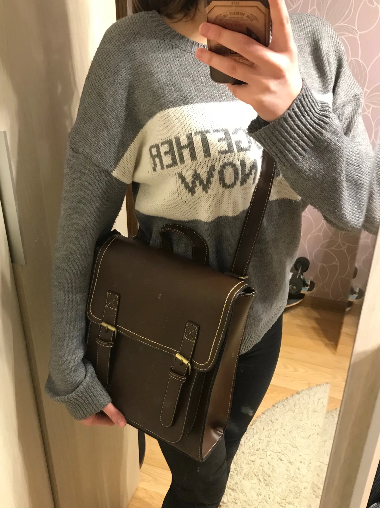 отличный рюкзак, для учёбы и просто, красивый, винтажный, как я и хотела:)) ниток нет, запах как у новой сумки, в подарок положили ручку. пришёл за 12 дней в пятёрочку, продавец подтвердил заказ через несколько часов