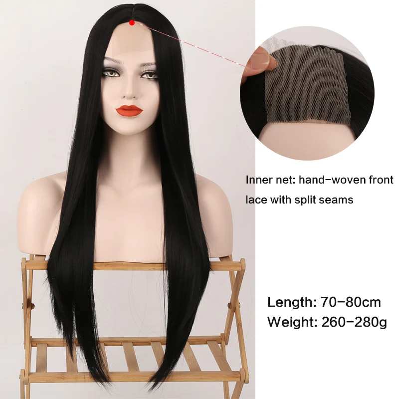 Длинные черные волнистые волосы средней части WEILAI, парик из фронтального волокна для будущего, косплей, натуральный термостойкий синтетический парик для женщин
