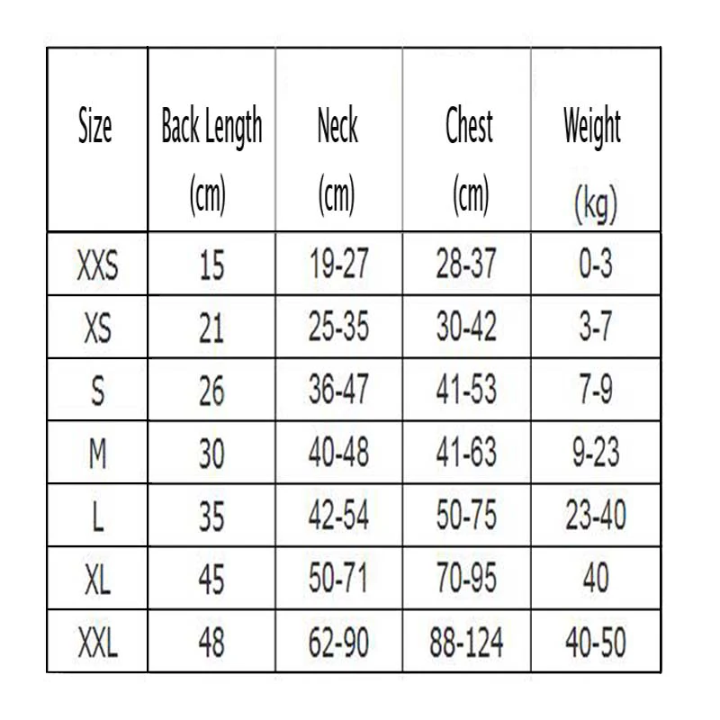 Ответ:Не волнуйтесь, пожалуйста, сообщите нам размер вашей собаки, мы предложим вам размер!
