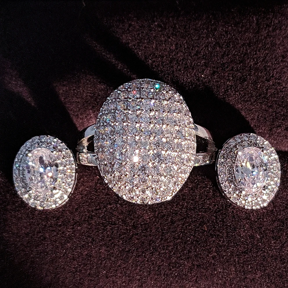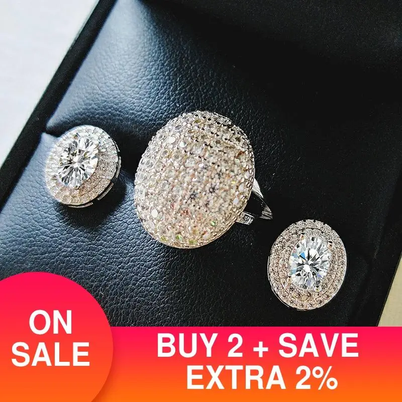 Набор ювелирных украшений для невесты, комплект из 2 круглых сережек-гвоздиков серебристого цвета с ореолом, обручальное кольцо, свадебный подарок, для вечеринки, J5342