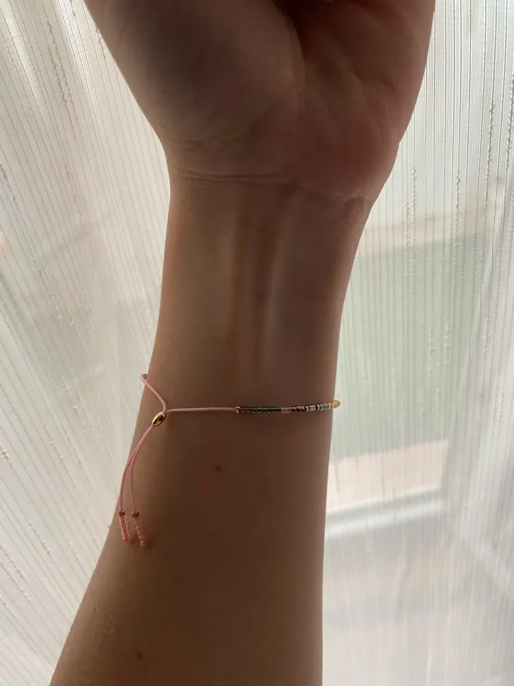 Это очень красивый, изящный браслет. Прекрасно регулируется. Цвета как на фото