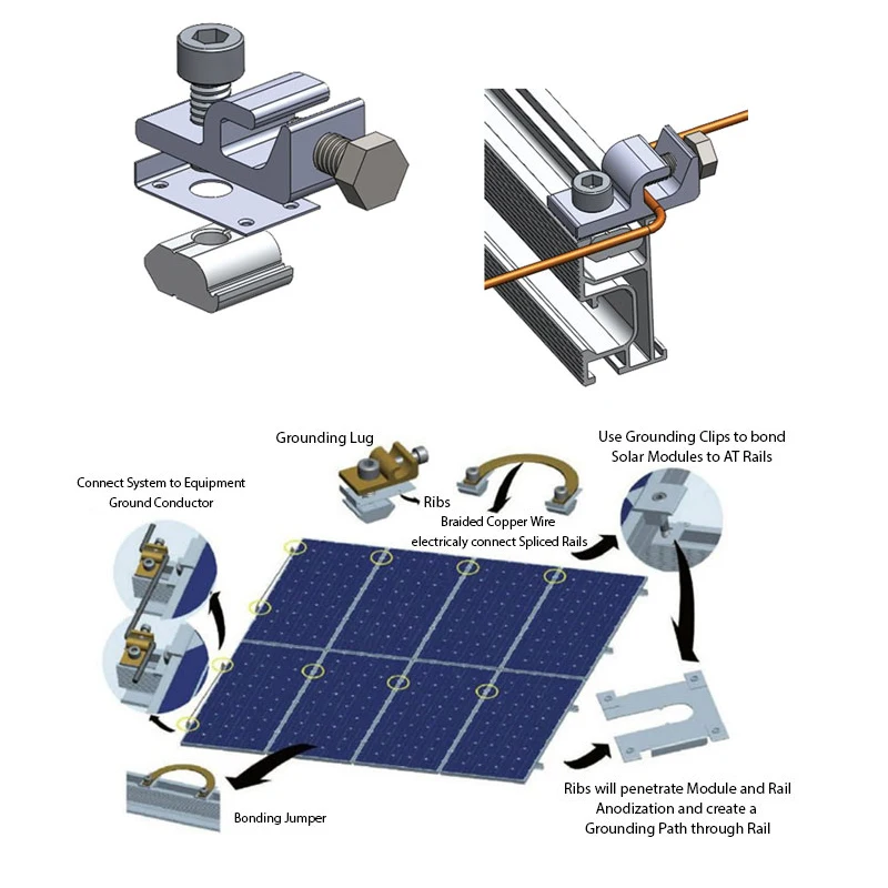 Заземляющий наконечник 10 шт. 304 нержавеющая сталь Коррозионностойкий Солнечный Заземляющий зажим для солнечной монтажной системы