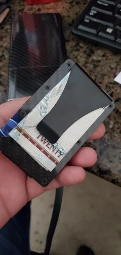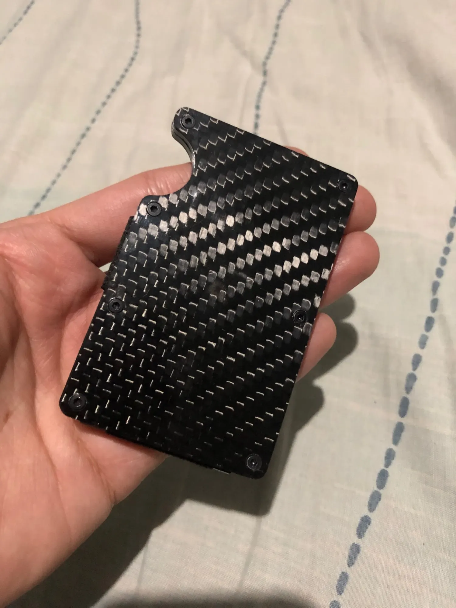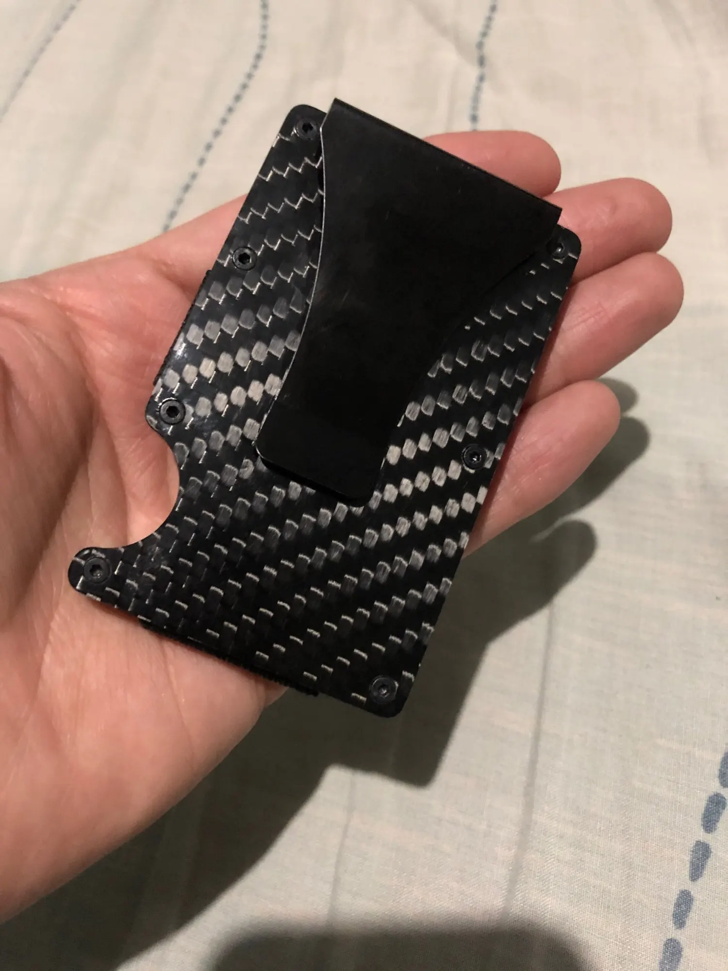 Во-первых, я шокирован тем, как быстро товар доставляется в регион Залива всего за 10 дней, это первый товар, который я получил быстро, кошелек очень хороший, очень хорошо изготовлен, и карбон выглядит действительно хорошо, просто привык, как положить карты внутрь