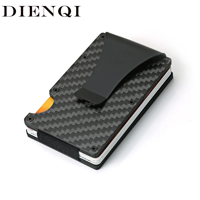 DIENQI карбоновый держатель для карт, мини тонкий кошелек для мужчин, Алюминиевый металлический RFID волшебный кошелек, маленькие тонкие мужские кошельки, сумка для денег, Vallet