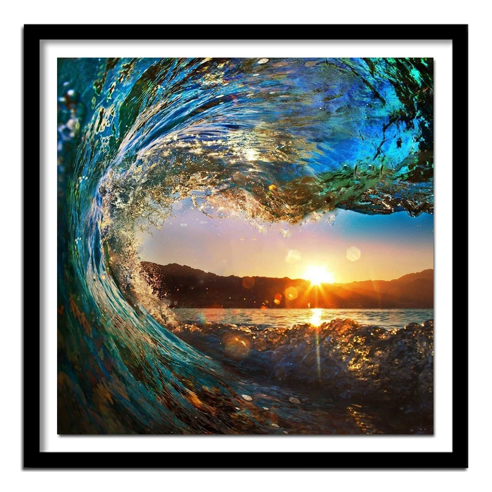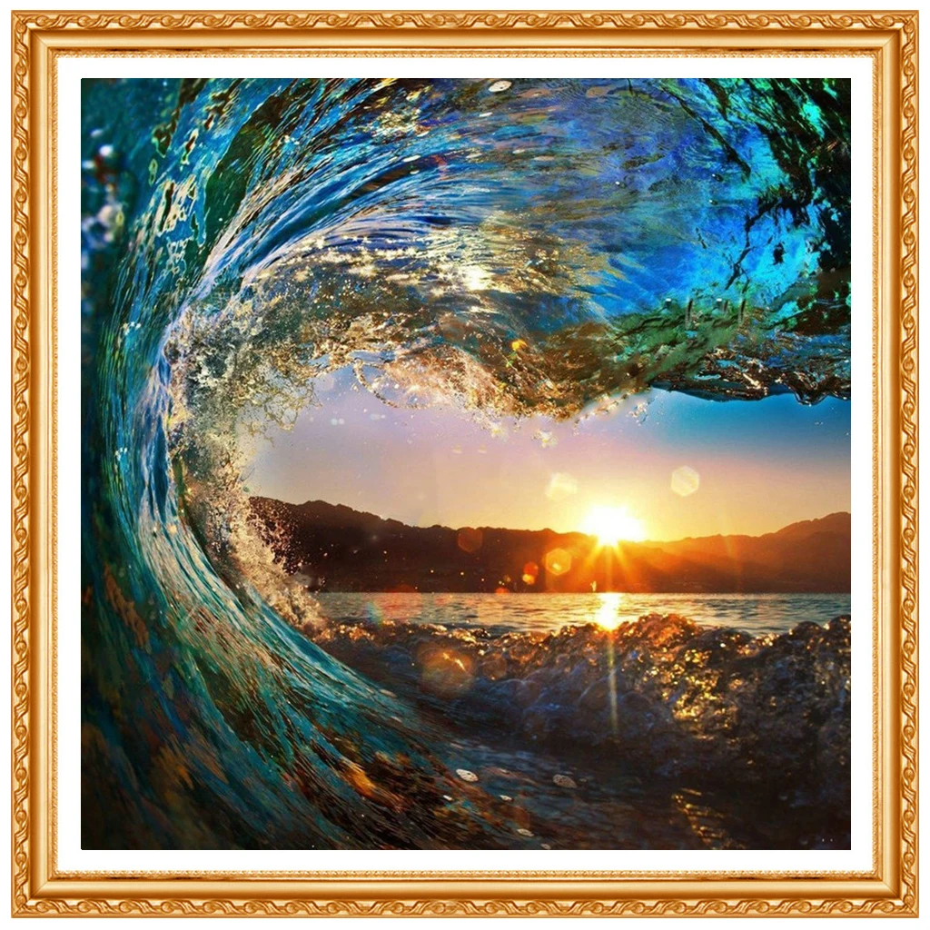 Алмазная живопись 5D сделай сам пейзаж, картина, выложенная алмазами вышивки крестом закат Алмазная вышивка море волны ручной работы