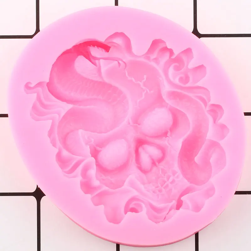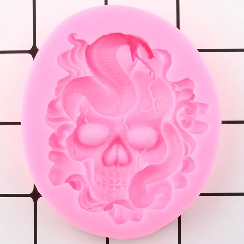 Силиконовые Формочки в виде змеи с 3D черепом, форма для помадки, инструменты для украшения торта на Хэллоуин, глины, мыла, конфет, шоколада, формы для мастики