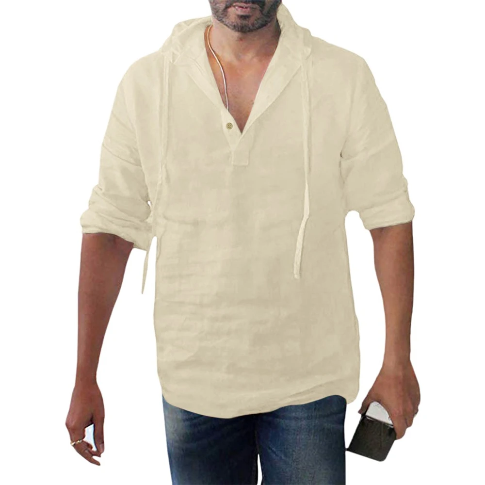Мужская рубашка с капюшоном Helisopus, осенняя однотонная хлопковая льняная блузка с длинными рукавами, Повседневная Свободная рубашка, camisas para hombre