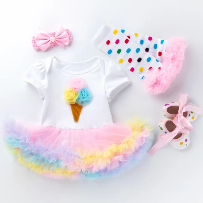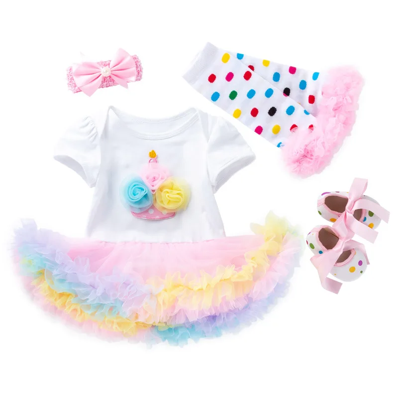 Для новорожденных, для маленьких девочек одежда для детей брендовая одежда для малышей из 4 предметов: Комплекты одежды с юбкой-пачкой Детский комбинезон для мальчиков и девочек; Roupas De Bebes кукла трансфер до Menina Infant, От 0 до 2 лет, Детские наряды на день рождения