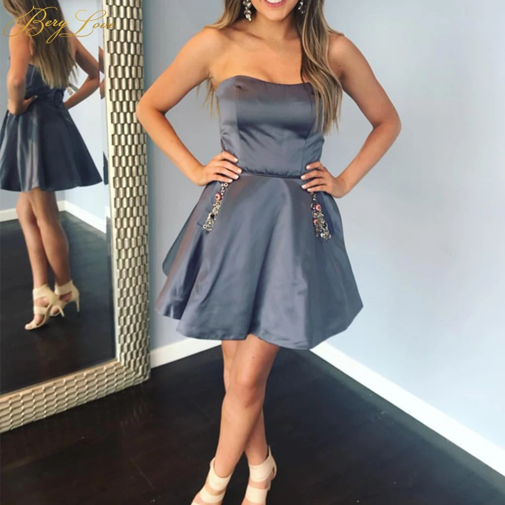 Атласное Короткое мини-платье BeryLove, красное коктейльное платье на молнии, с карманами, Украшенными Бисером, для выпускного вечера