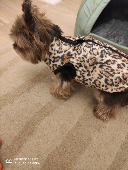 Жилетка – восторг! Очень яркий и качественный рисунок! Пошив тоже качественный, нитки не торчат. На чихуахуа (2200кг) размер S в самый раз. Так же подойдет если надевать жилет сверх костюма или свитера. Жилет слегка утеплен синтепоном. Но расцветка супер! Доставка до Москвы 12 дней. Спасибо большое продавцу!!!