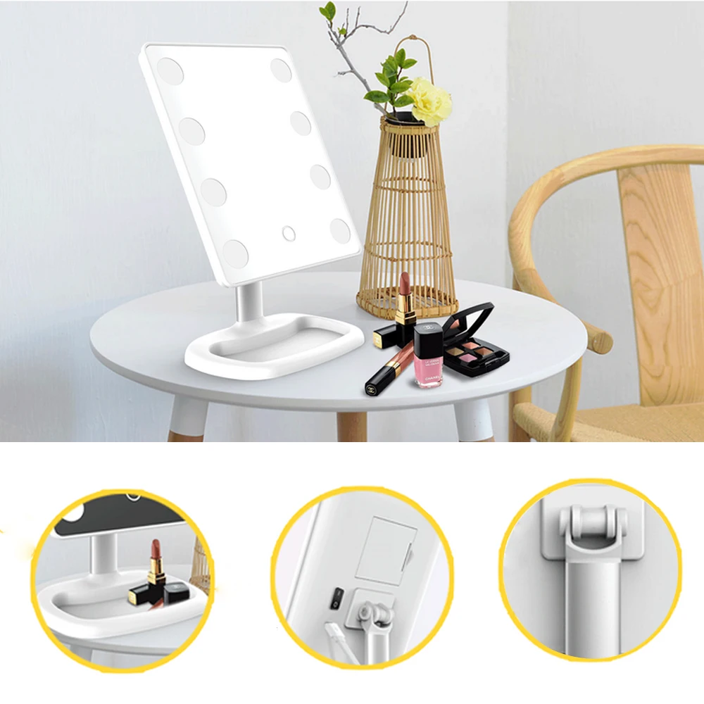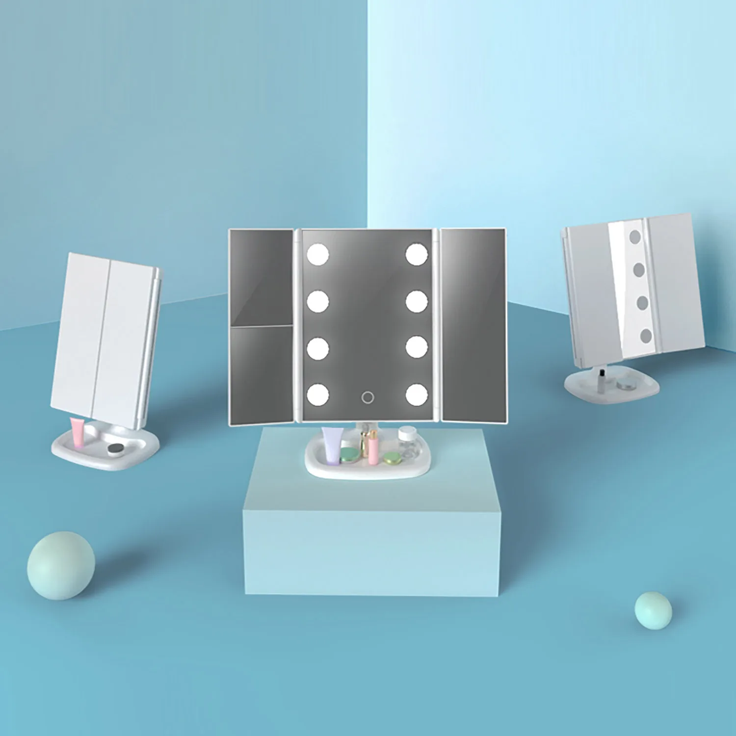 Под углом 90 градусов Регулируемый Портативный складной USB заряжаемый светодиодный косметическое зеркало с подсветкой лампы для Ванная комната Туалетная комната Спальня столUSD 11,73/Шт.