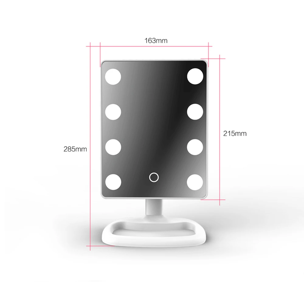Подробности:Встроенный 8-светодиодный Плавная лампочки с регулировкой силы света, мы предоставим вам яркий даже рассеянного освещения, позволяет сделать ваш макияж в темных или плохо освещенных местах.Конструкция с поворотом на 180 градусов позволяет зафиксировать в любом положении, чтобы придать вам идеальный угол обзора для лучшего макияжа.Может питаться от usb-кабеля с блоком питания или зарядным устройством телефона или вставлять 4 батарейки AA (не входят в комплект поставки!) для включения.Прочная и прочная основа может использоваться как хранилище для ювелирных изделий, косметики, косметических инструментов или аксессуаров для волос.С одной кнопкой сенсорного зондирования, простой в использовании и яркость может регулироваться сенсорным переключателем.Спецификация:Материал: АБС-пластик, алюминиевый сплавРазмер зеркала: 215x163 мм/8,46x6,42 дюймаПитание: 4 батарейки типа АА(Не входит в комплект!)Примечание: Из-за ручного измерения возможны небольшие отклонения.Посылка:1 x косметическое зеркало
