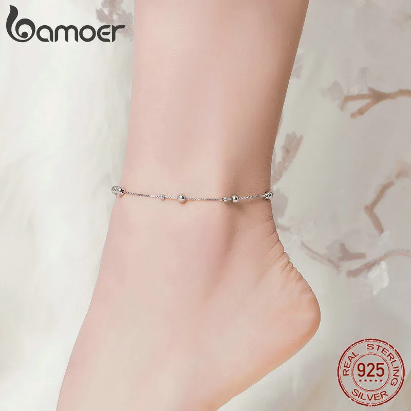 Женский Круглый браслет bamoer из стерлингового серебра браслет на ногу из бисера пробы с цепочкой на ногу в минималистическом стиле SCT005