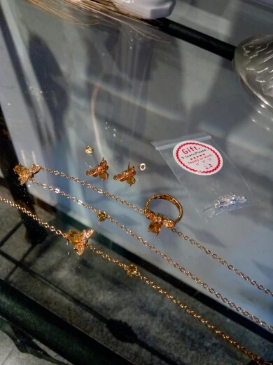 Для информации украшение очень красивое, но проблема в застежке, которая совсем не соответствует европейским стандартам. На ожерелье и браслете есть китайские застежки, которые не так безопасны, как на фото застежка. Я хотел предложить этот набор, и вдруг я не буду, потому что слишком рискован потерять его.